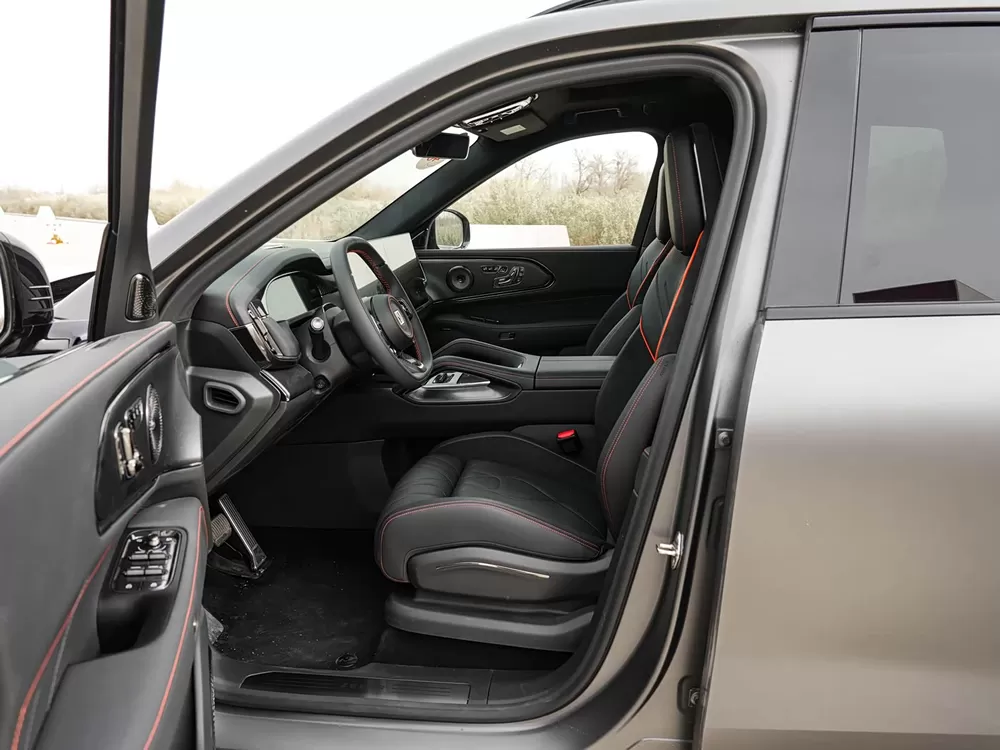 The chassis system features the SEA AI Digital Chassis, equipped with closed-loop dual-chamber air suspension, dual-valve CCD electromagnetic dampers, and a 48V active stabilizer bar. The suspension offers an adjustment range of -30 mm to +50 mm, providing a maximum ground clearance of 241 mm. With a "Moose Test" result of 83.6 km/h, the vehicle strikes a perfect balance between extreme handling precision and ride comfort. The body structure employs a high-strength steel-aluminum hybrid frame—boasting a 30% increase in torsional rigidity—and is paired with a Brembo braking system (standard across the entire lineup) to deliver a driving experience characterized by "stable speed and precise stopping." At the core of the intelligent cockpit lies a "cabin-driving integration" philosophy. Powered by the Qualcomm Snapdragon 8295 chip, it drives a dual 16-inch OLED central display setup alongside a dedicated entertainment screen for the front passenger. The rear cabin features a 17-inch ceiling-mounted theater screen, supporting Dolby Atmos and independent audio zone control. The entire model lineup comes standard with a 29-speaker Naim audio system, 16.8-million-color intelligent ambient lighting, an in-vehicle refrigerator, heated/ventilated/massaging front seats, and aviation-grade power-adjustable rear seats—creating a mobile luxury living room experience.